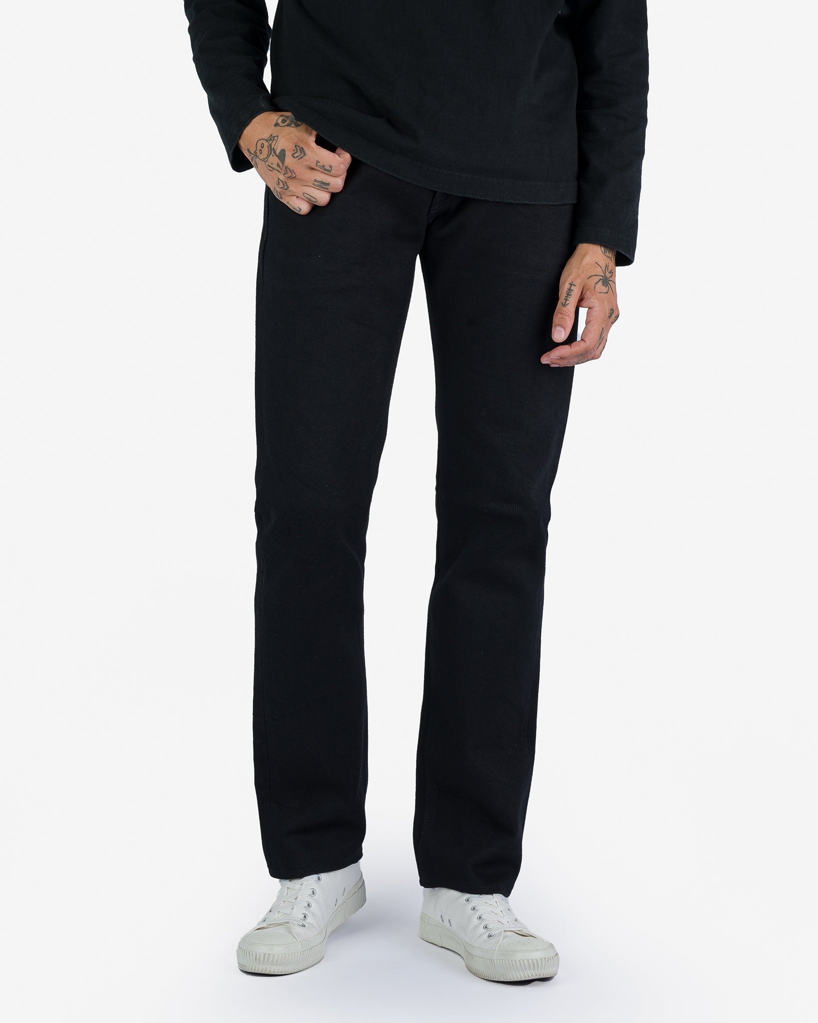 14oz Broken Twill Selvedge Denim Slim Tapered Cut Jeans - Indigo Overdyed Black